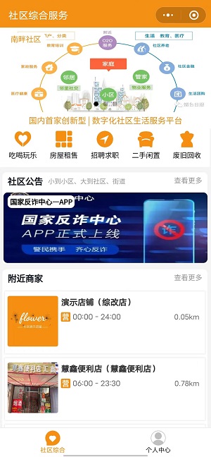 面向城市、乡镇用户提供多元化社区便民、贴心服务。